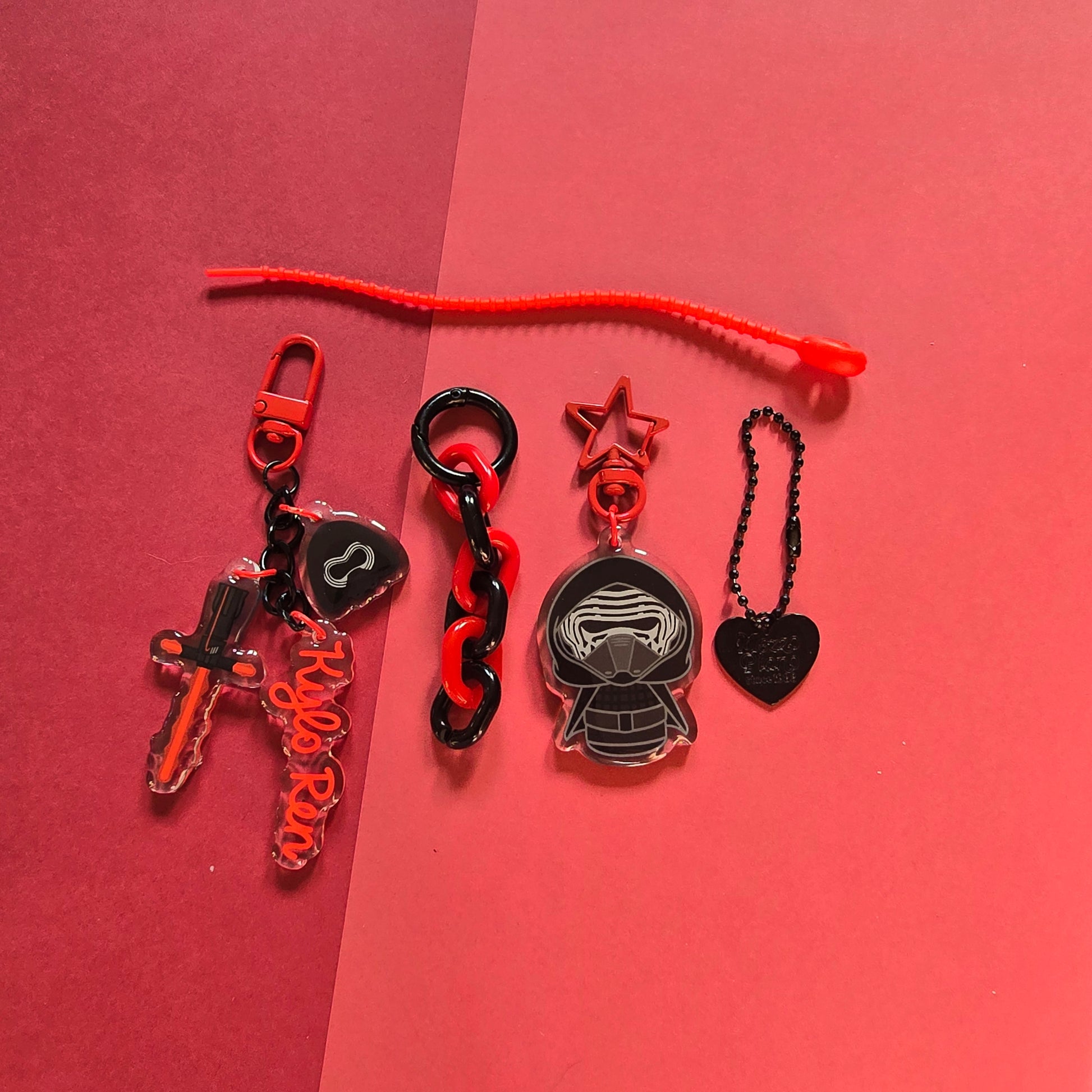These are sets of keychains sold together as a set attached to a silicone tie!